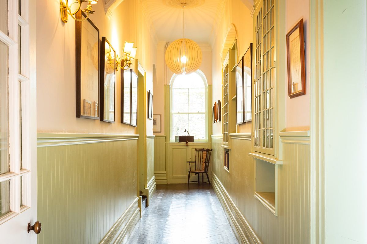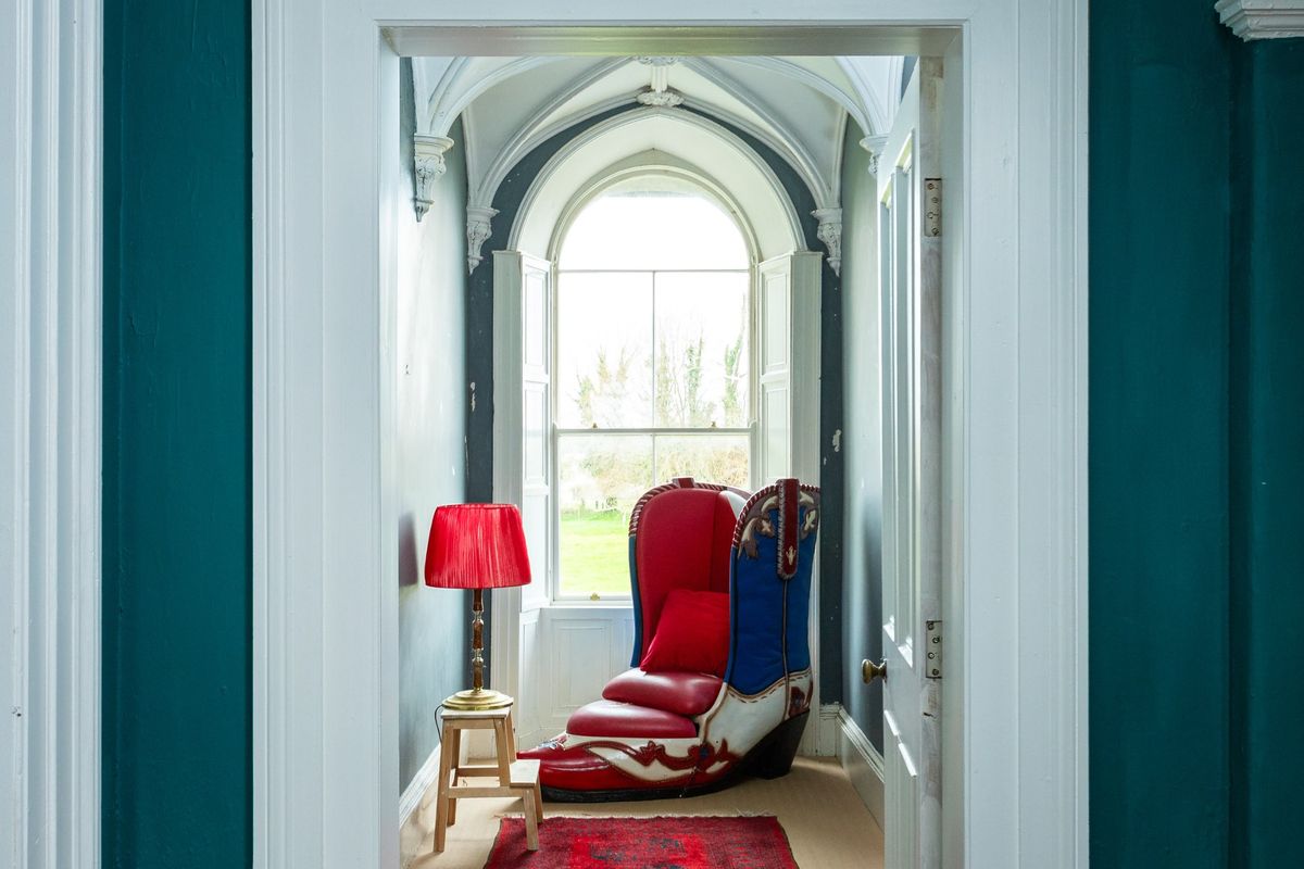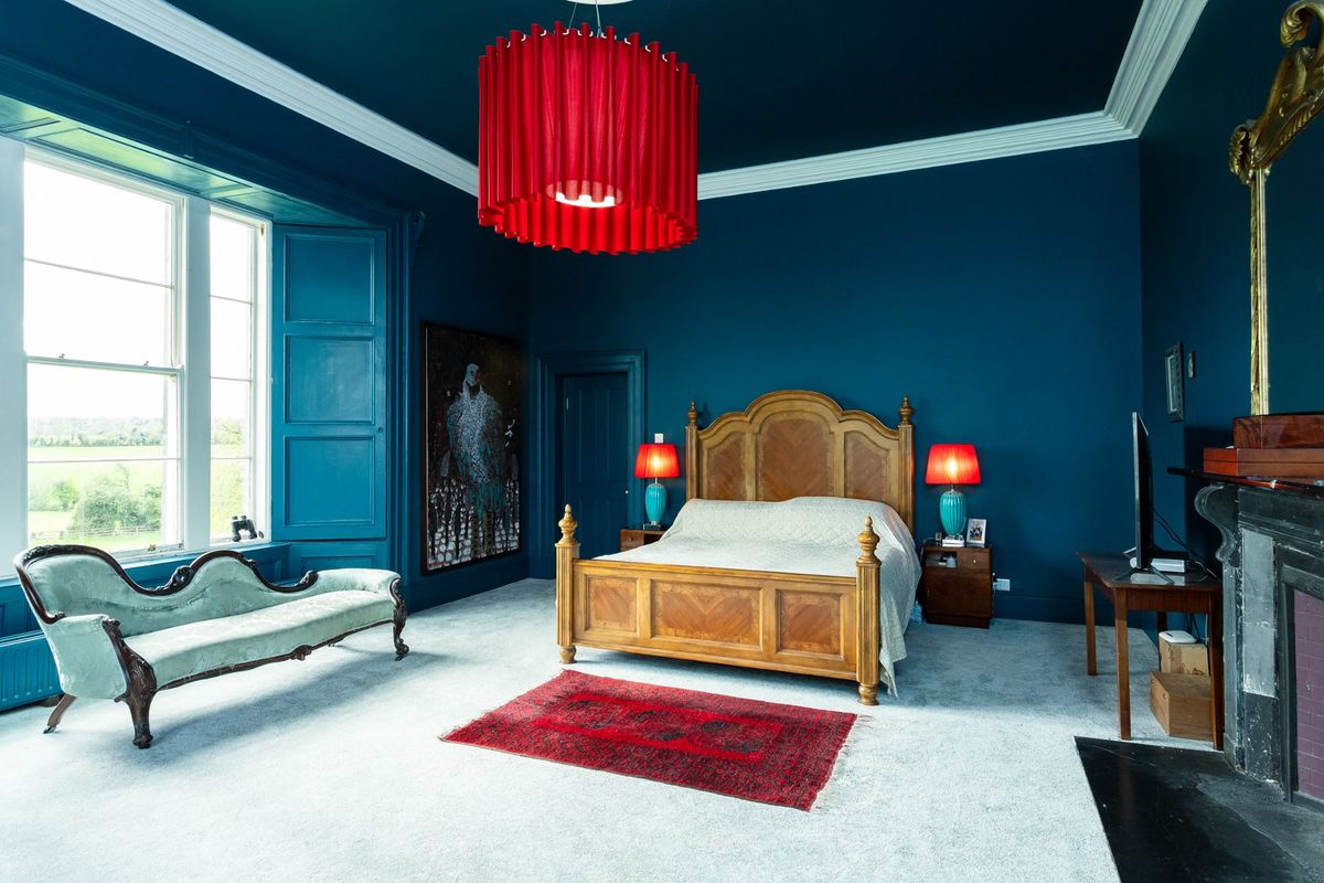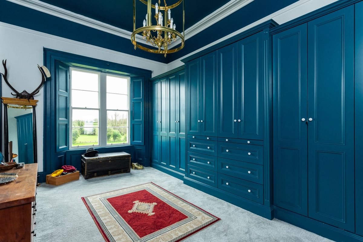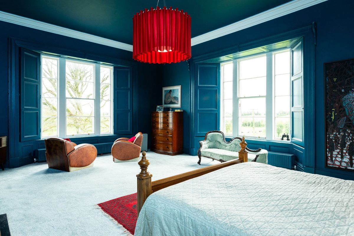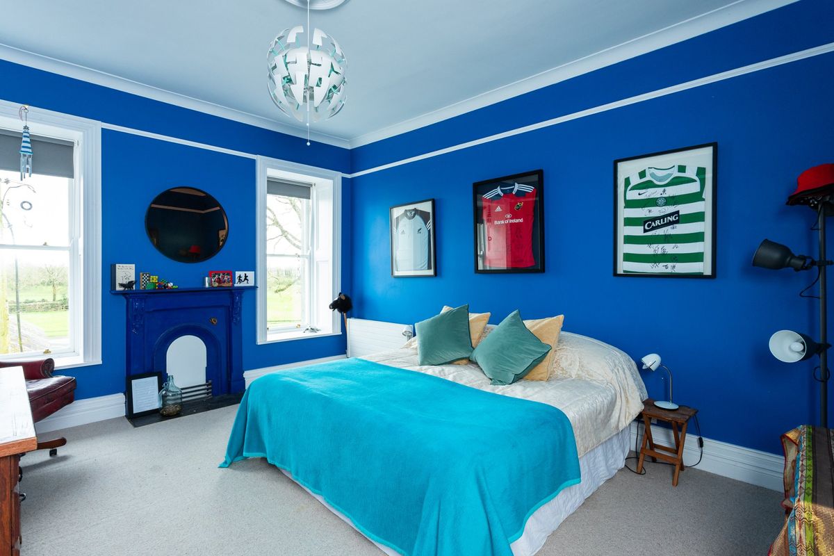 The current owners have skilfully preserved the property’s historic character while introducing a bold and vibrant colour palette that adds a modern, distinctive touch throughout the house. Upon entering Cangort House, you are greeted by a long entrance hall featuring a decorative vaulted ceiling and stunning parquet flooring, which extends into many of the rooms throughout the house. To the right is a small lobby area, and as you continue, the first reception room you encounter is the dining room. This elegant space boasts lofty ceilings adorned with intricate cornicing, solid wood flooring, a striking marble fireplace, and large mullioned windows, a hallmark of the Jacobean era.