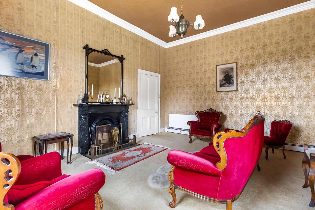 Drawing Room: Spacious bright room featuring carpet flooring, coving and sash windows with shutters. This room features a marble fire place and beautiful views out to the garden.