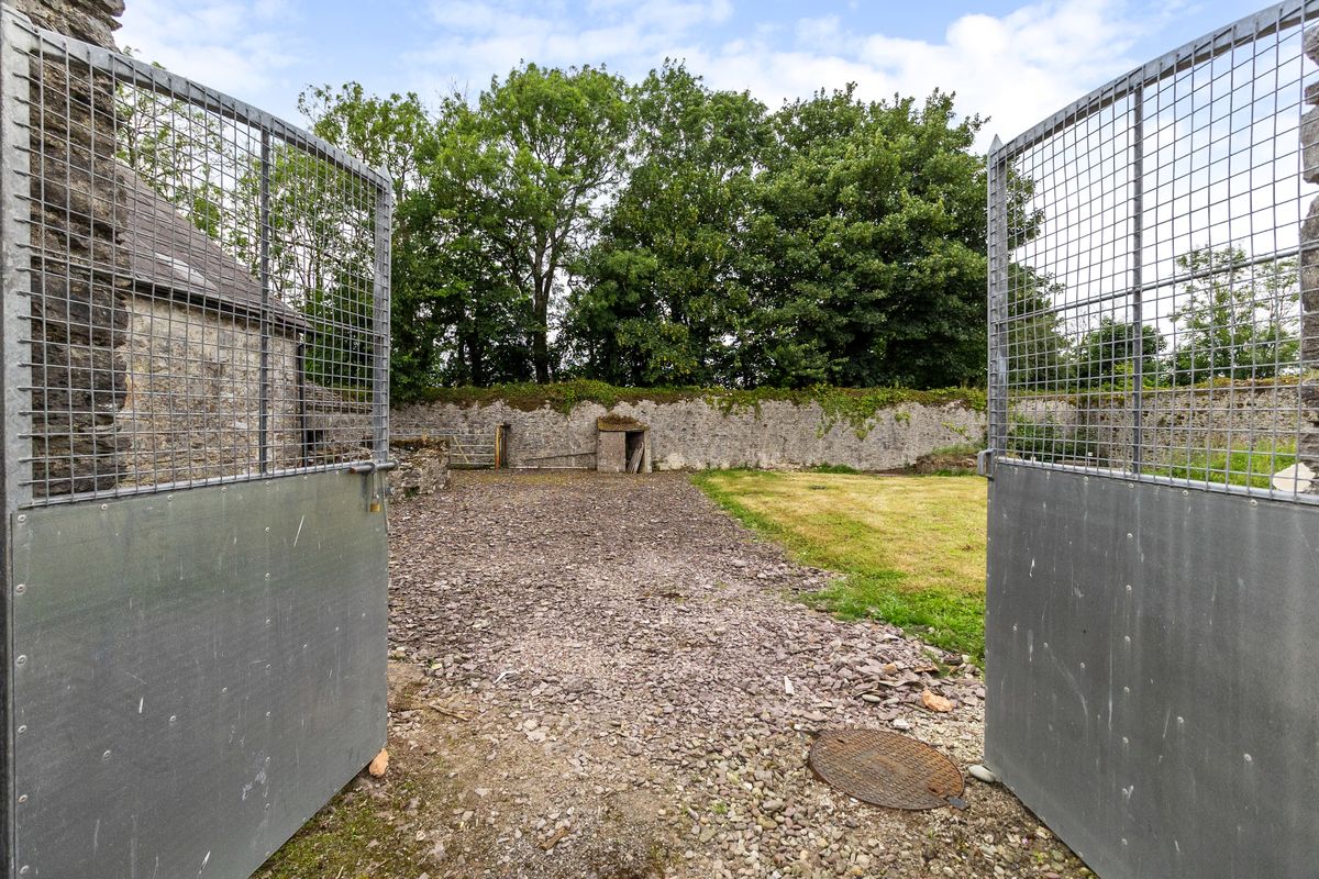 This property stands on 3.24 acres and features gated entrance with sweeping driveway. It boasts landscaped gardens and mature greenery. There is a walled paddock and paved courtyard to the rear which is surrounded by a cluster of stone out buildings which have huge potential (subject to planning). There is ample parking to the front and rear of the property with separate boreen access for agricultural access. A large aluminium shed is in the far field.