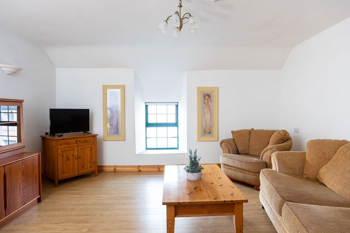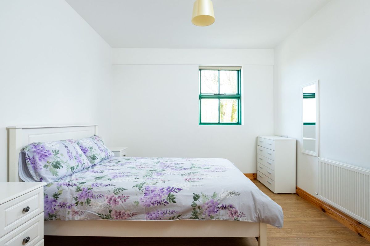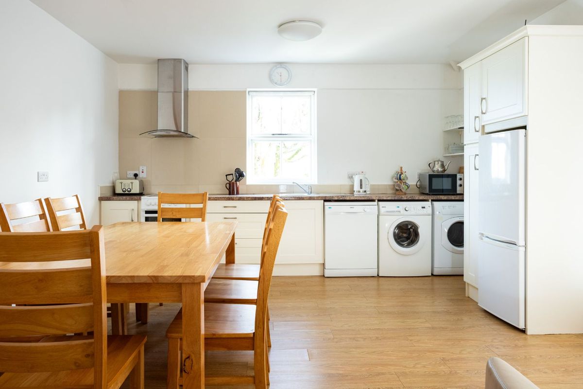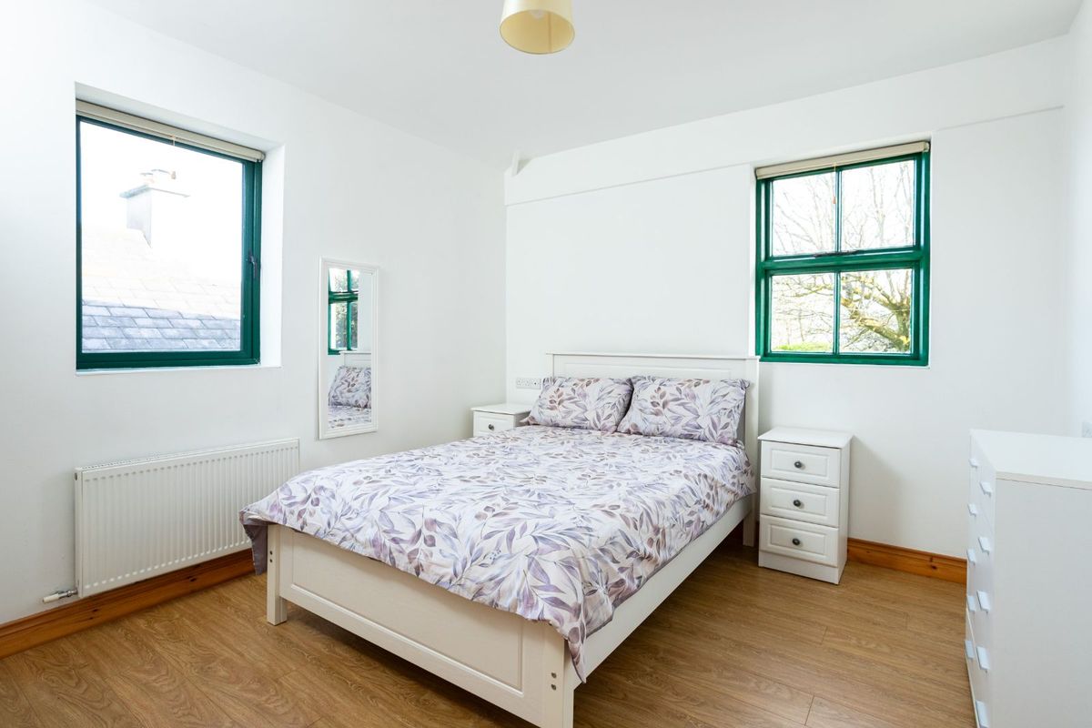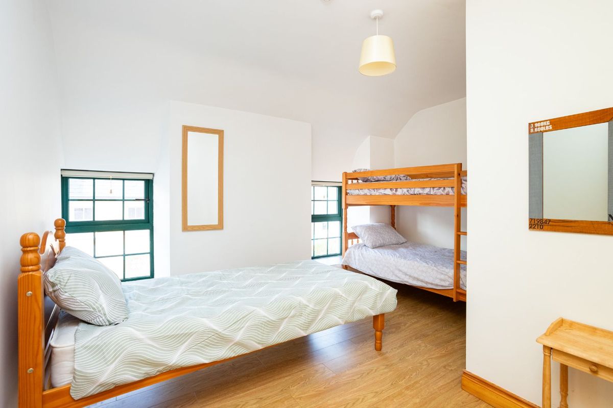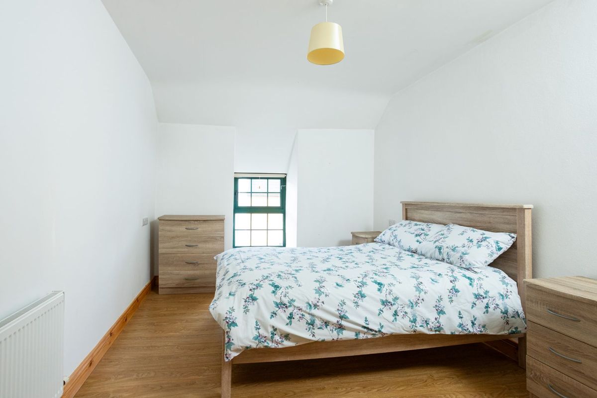 Also included is the adjoining two-storey building located at the western end of the property. Painted in a soft sage green render, it offers a striking visual contrast to the distinctive lilac hue of the main building. Rich in local history and formerly known as The Tailor’s’, this charming structure now provides valuable additional storage space.