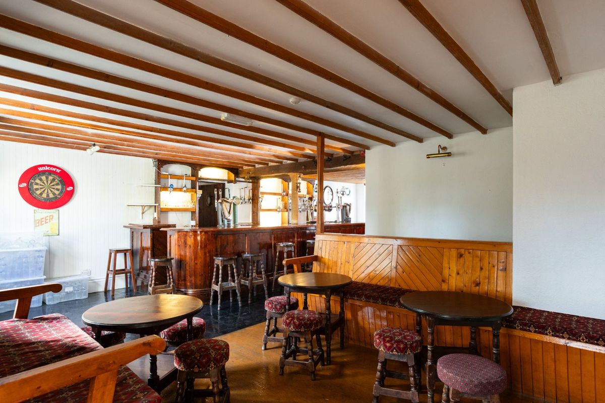 The ground floor of the property extends to approximately 1,939 sq ft, with the bar area exuding traditional charm and warmth, featuring exposed timber ceilings, classic timber & slate flooring, and a beautifully polished bar counter. Comfortable seating arrangements with upholstered benches, enhance the welcoming atmosphere, making it an inviting social hub for locals and visitors alike.
