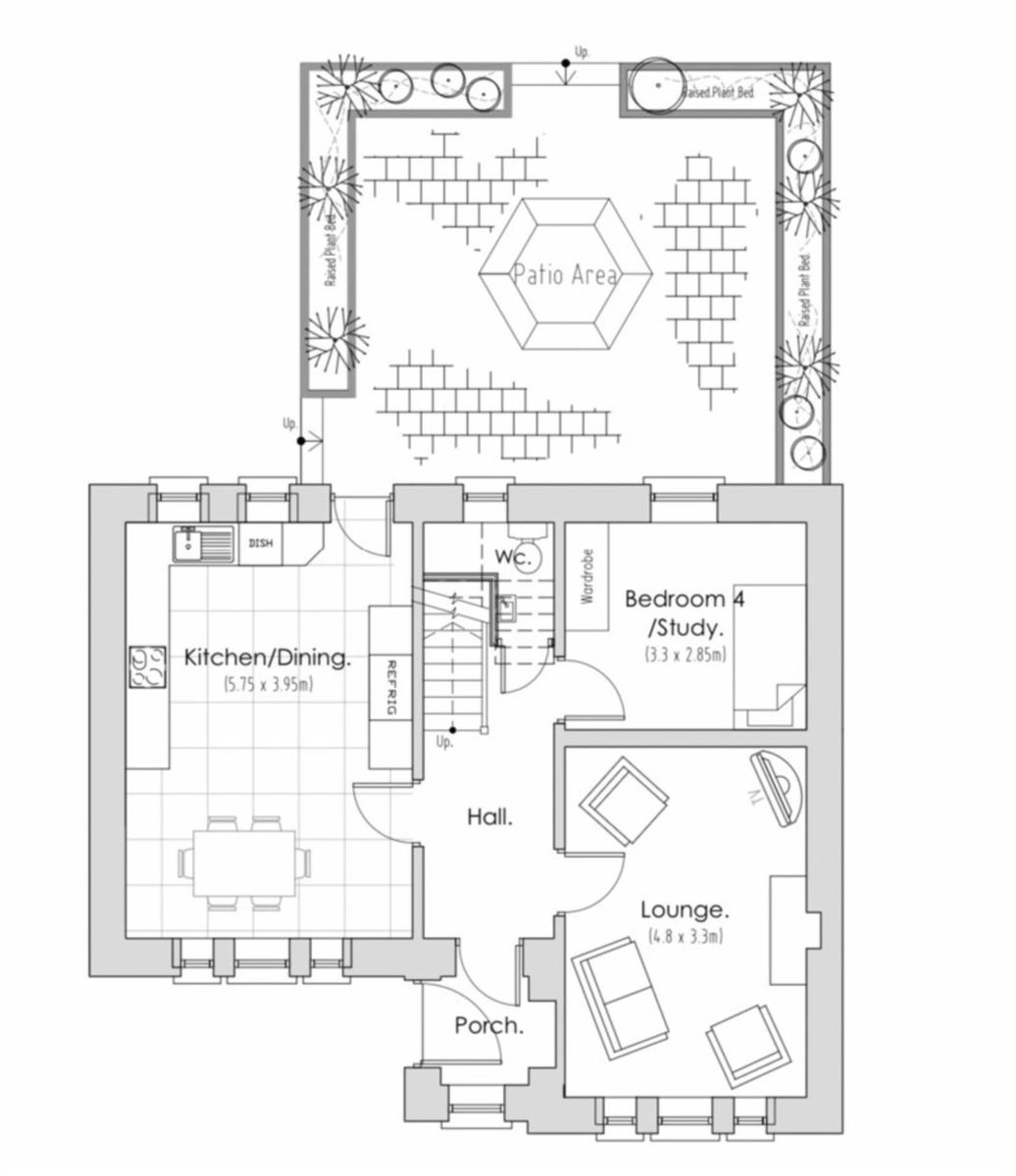 Fully glazed glass panel door to the rear. Leading to a large 40 sq.m enclosed patio area which is completed in Tobermore paved stone. Also includes the foundations if someone wished to add a 40 sq.m extension to the rear.