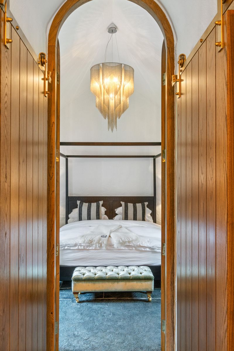 – Floor to ceiling carved wooden doors, leading to;