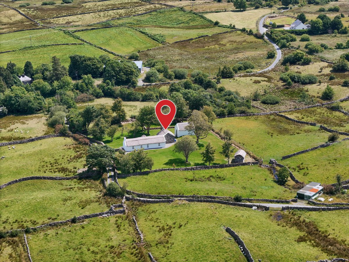 This is a charming, romantic property, located on the slopes of the dramatic Mount Gable, which dominates the isthmus between Lough Corrib and Lough Mask with some of the most scenic mountain walks in Ireland, and just a short stroll from the mysterious Lough Coolin.