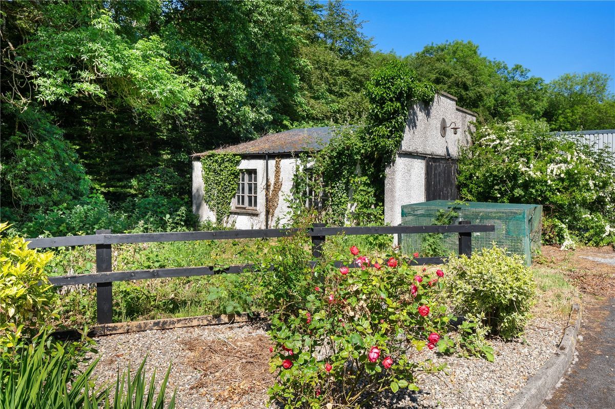 The house is surrounded by well planted gardens, as well as two paddocks and a variety of original outbuildings. To the right of the entrance gate and oratory stands a mature stand of oak trees, planted approximately forty years ago. Although in need of some repair these buildings offer the discerning buyer a wonderful opportunity to further develop the property.