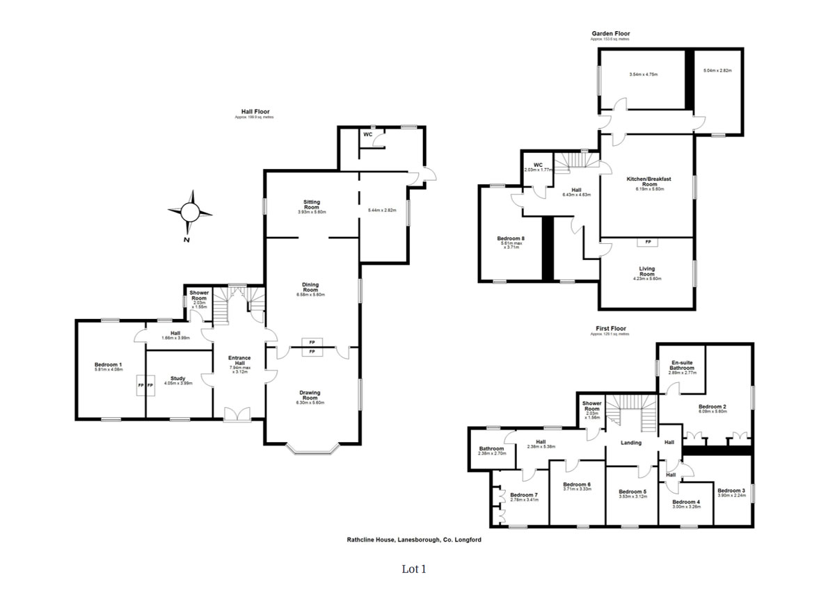 The main bedroom accommodation is located on the first floor and includes a spacious master suite, along with five additional bedrooms, a family bathroom, and a separate shower room.
