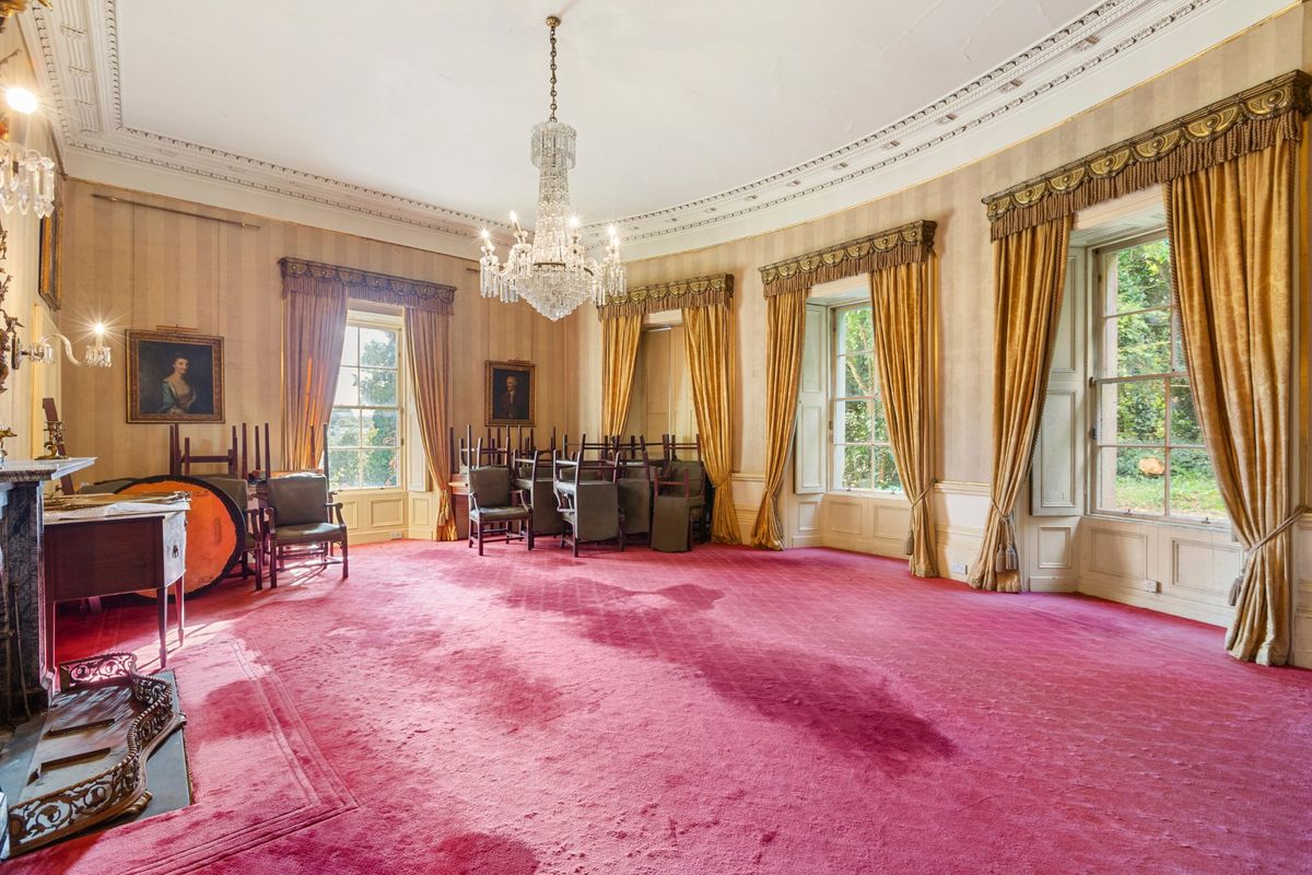 Stepping into Newport House, one is greeted by a stunning light-filled Reception Hall, illuminated by two grand sash windows. To the left, lies an exquisite Drawing Room, crowned by a lofty ceiling and bay windows which is framed by three large sash windows adorned with elegant shutters. These are complemented by two additional sash windows on either side of the bay, all of which offer serene views of the Black Oak River. The room’s inviting ambience is enhanced by an open, Adams fireplace and the soft glow of three chandeliers. Adjacent to this, is the Dining Room, a gracious space with four expansive sash windows, a period fireplace and an idea setting in which to host grand dinner parties and family gatherings.