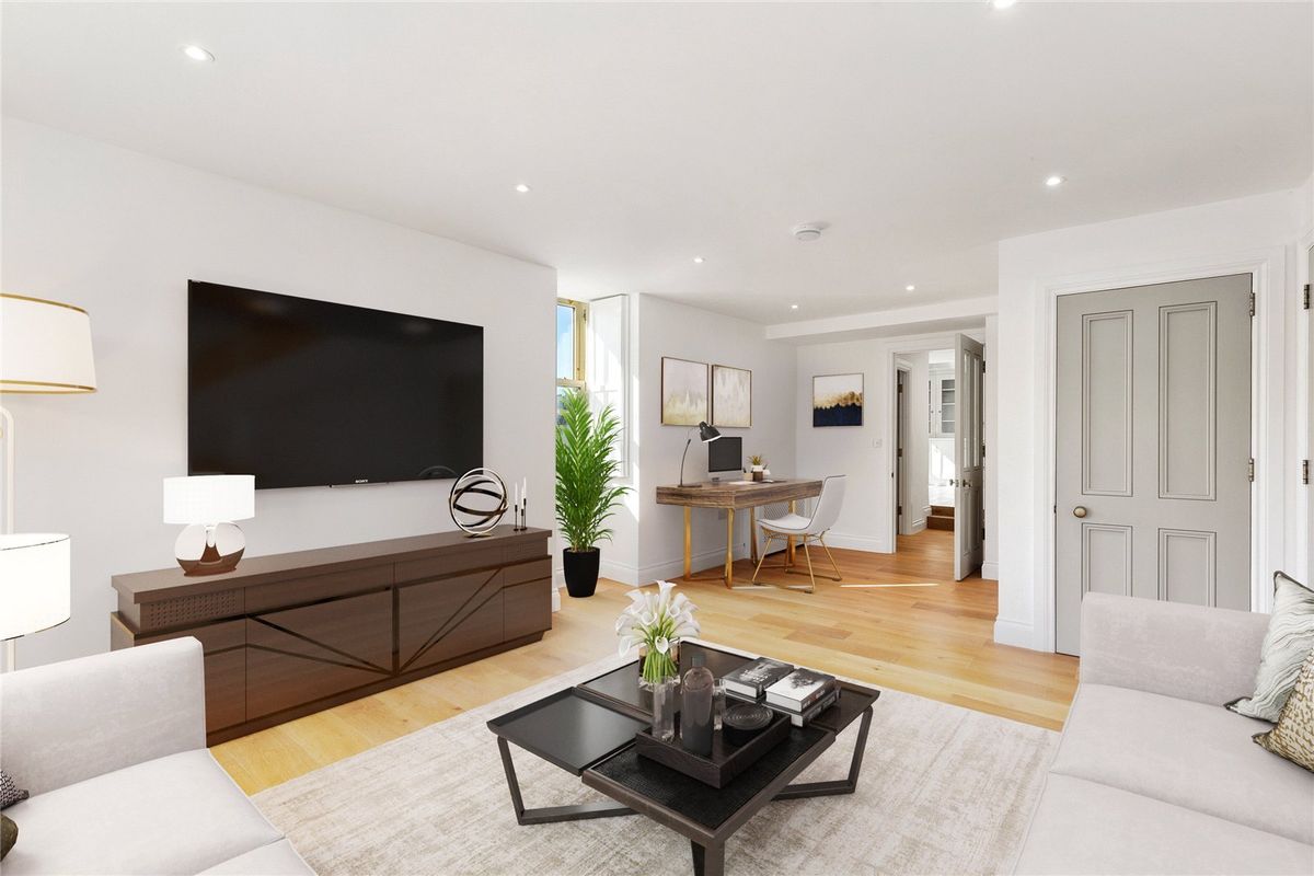Behind its elegant façade lies a beautifully restored period home, where original sash windows with shutters, herringbone flooring, and high-end internal joinery are complemented by modern comforts including a chef’s kitchen with quartz worktops, Smeg appliances, and a walk-in pantry. The light-filled reception rooms enjoy river views and feature an inset stove, creating a warm and inviting atmosphere.