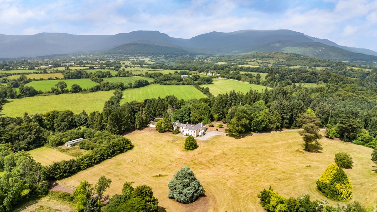 Comeragh House is a prominent period estate occupying an elevated position in the heart of County Waterford. Set within approximately 40 acres (16.2 hectares) of mixed grounds, the property comprises mostly grazing land with areas of mature woodland, offering both practical agricultural value and natural beauty. Surrounded by rolling farmland and commanding views of the Comeragh Mountains, the estate includes a substantial main residence, a collection of original stone outbuildings, and partially landscaped gardens presenting a rare opportunity for thoughtful, conservation-led restoration in a spectacular rural setting.