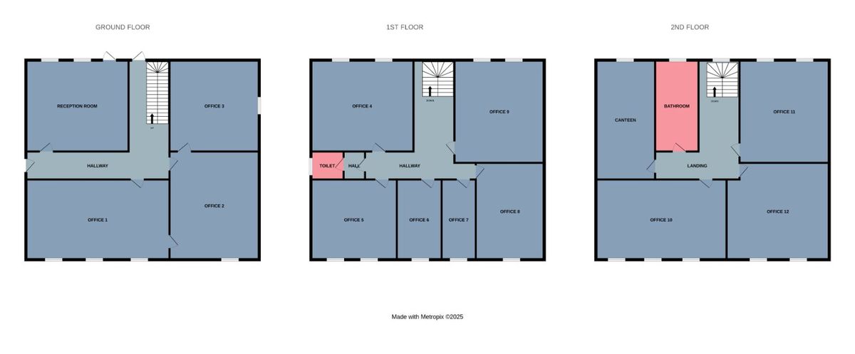 In need of extensive renovation and repair, the property is laid out over three floors and consists of a combination of large board rooms and smaller offices. There are also a number of toilets and a canteen.