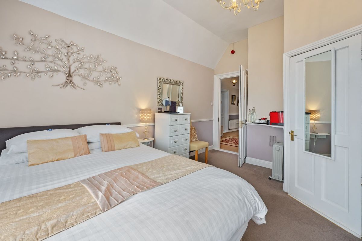 The accommodation is extensive and flexible, perfectly suited to a range of lifestyles or business opportunities. The main house offers six generously proportioned en-suite bedrooms, a number of spacious and elegant reception rooms, and a well-appointed kitchen that balances functionality with period charm. A recently refurbished two-bedroom apartment provides a stylish contemporary addition, ideal for rental, guest accommodation, or staff use. Completing the accommodation is a charming one-bedroom self-contained wooden chalet, with a galley kitchen and bathroom, offering further versatility for guests, extended family, or income potential. Together, these living spaces provide immense scope, whether as a grand private residence, boutique hospitality business, or multi-use property.