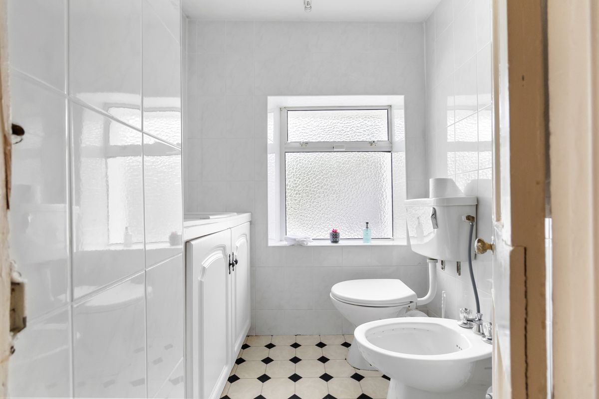 First Return Bathroom: Fully tiled bathroom after first stairs featuring w.c, wash hand basin and bath. This bathroom features built in storage units.