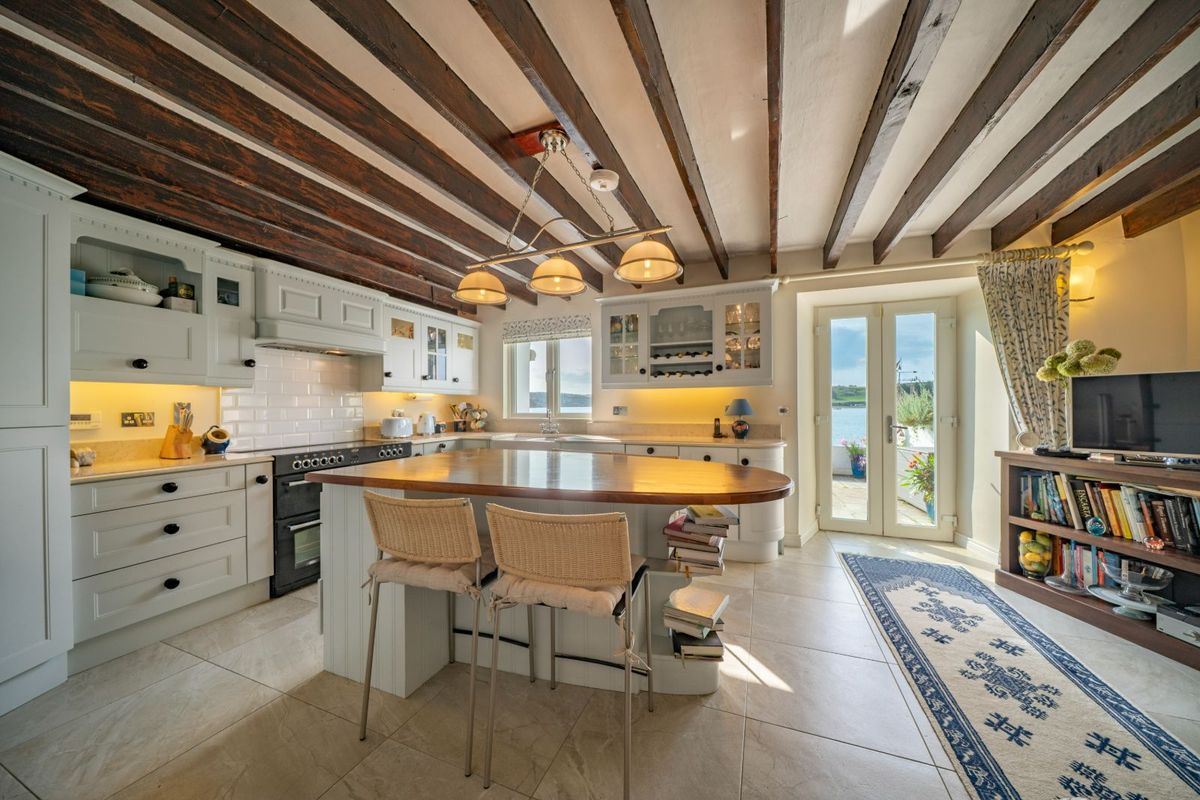 Upstairs, two bright double bedrooms enjoy stunning water views, complemented by a contemporary family shower room. The entire property was sympathetically renovated between 2012 / 2014, with upgrades to the roof, windows, plumbing, and installation of oil heating ensuring modern reliability while preserving its period character.