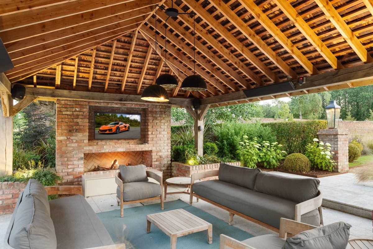Set on about 17 acres of beautifully landscaped grounds, Emsworth enjoys a private yet accessible setting, approached via electric gates and a sweeping, tree-lined gravel driveway. The mature grounds surrounding the house are a key feature, offering both privacy and a scenic rural backdrop, while also providing a wealth of amenities. These include formal gardens, two kilometres of woodland walks, an ornamental lake with a decked seating area, a floodlit paddle court and sports pitch, as well as an outdoor heated swimming pool and jacuzzi with adjoining BBQ areas.